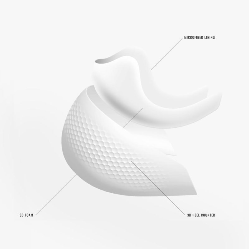 3Dヒールキャップと事前成形されたフォーム、さらに軽量メッシュライニングの絶妙な組み合わせが、驚異的なヒールホールドを実現し、足の滑りを徹底的に防ぎます。